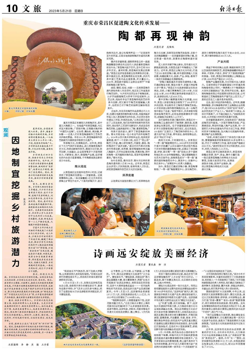 如今,荣昌区已建成安陶小镇、荣昌陶博物馆、“一带一路”陶瓷博览中心、安北陶艺村、通安小栖等特色陶文旅打卡地20余处,2022年,累计接待游客近200万人次。