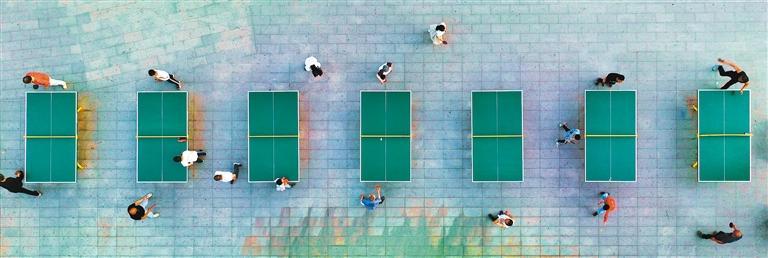 ▲4月15日,四川省仁寿县文林街道文林社区,居民在新建的乒乓球场休闲健身。