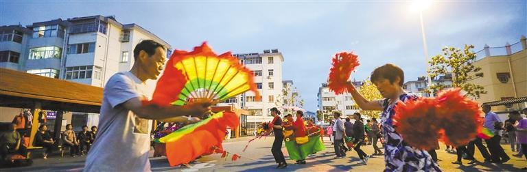 ▼5月17日,江苏省淮安市清江浦区前进小区居民在广场上跳舞。该小区通过改造绿化荒置空间等措施,解决了居民无休闲娱乐场所等问题。赵启瑞摄(中经视觉)