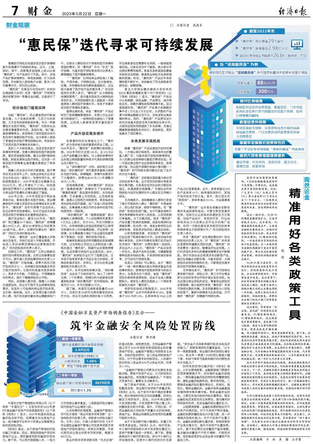 未来“惠民保”的发展前景如何?阳光财险相关负责人认为,对“惠民保”的未来还是要保持谨慎乐观的态度,“惠民保”的市场需求一直存在,随着经济社会发展,人们对多层次多样化的健康保障需求会不断释放。预计市场也会出现更多的创新型产品,通过社商融合创新发展,与基本医保、大病保险形成有效衔接和补充,不断推进完善多层次医疗保障体系建设。