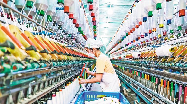 5月21日,在江苏省连云港市赣榆区城头镇的一家纺织企业内,工人正在忙碌生产。今年以来,国内纺织企业订单充足。赣榆区依托纺织产业优势,鼓励企业加速科技创新,加紧赶制产品,满足国际市场需求。