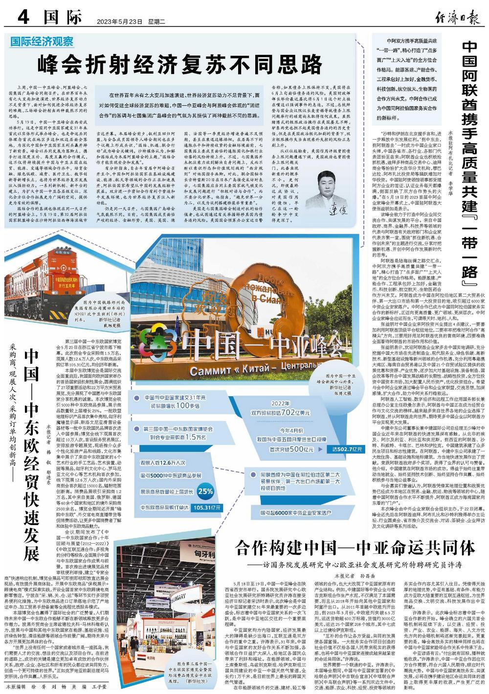 “沙特和伊朗在北京握手言和,进一步释放中东发展红利。‘到中东去,到阿联酋去’一时成为中国企业家口头禅,中国各省市、各行业、各部门代表团纷至沓来;阿联酋企业也积极抢抓机遇,迪拜多种商品交易中心、迪拜商会等纷纷扩大在华分支机构,穆巴达拉、阿布扎比投资局等踊跃增加对华投资。中国驻阿使领馆领事部受理阿方企业的签证、认证业务每天都爆满,侧面反映了双方合作势头的火爆。”在5月18日的2023首届中阿企业家峰会开幕式上,中国驻阿联酋大使张益明如是表示。