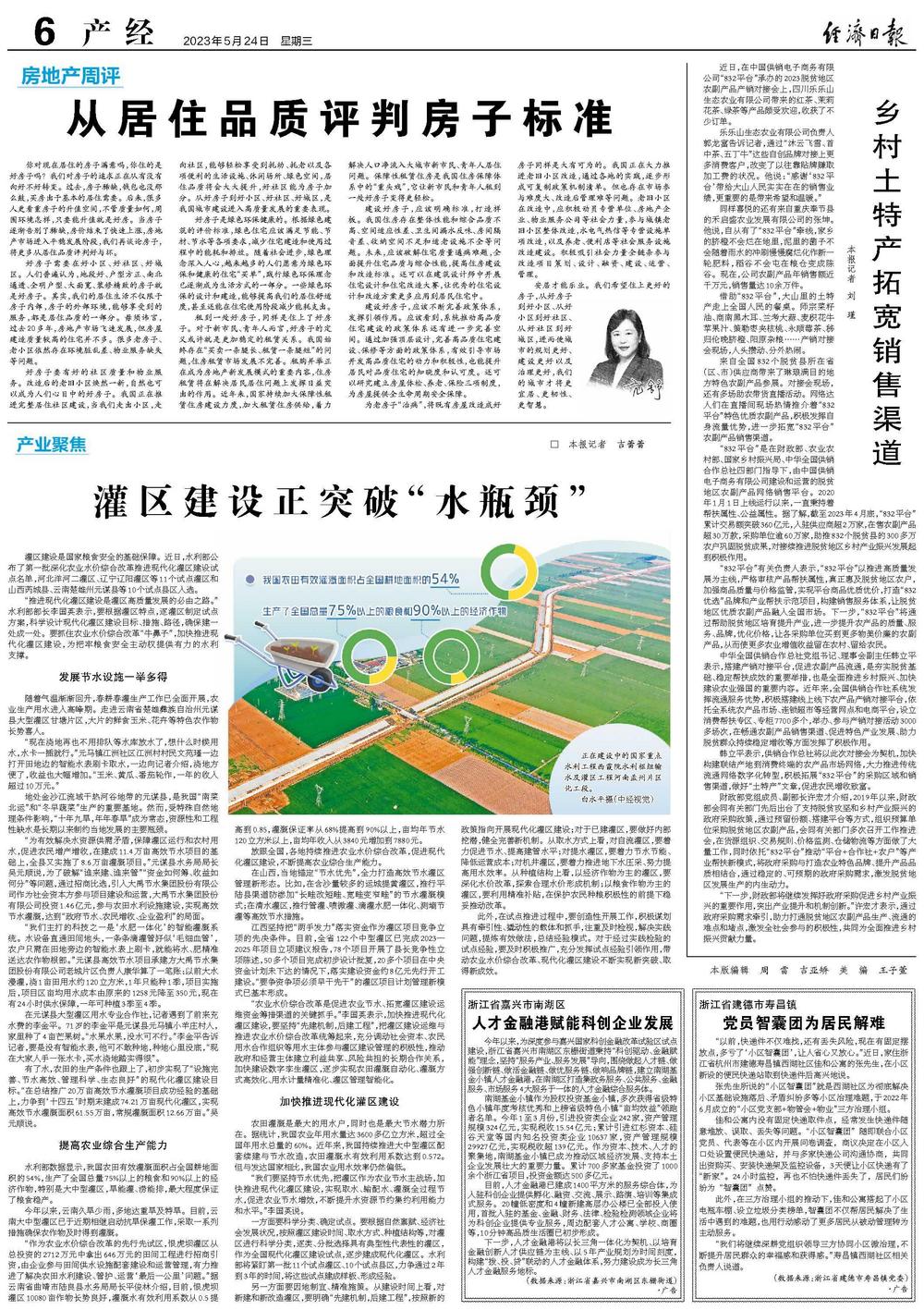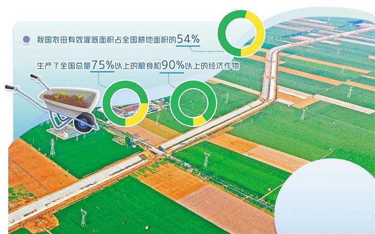 水利部数据显示,我国农田有效灌溉面积占全国耕地面积的54%,生产了全国总量75%以上的粮食和90%以上的经济作物,特别是大中型灌区,旱能灌、涝能排,最大程度保证了粮食稳产。