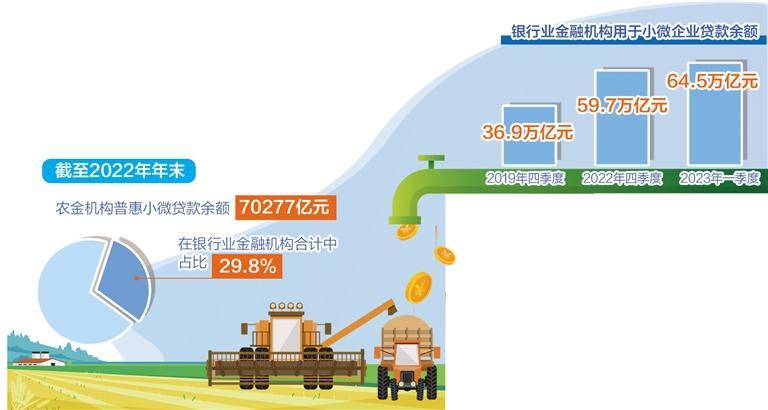 普惠金融是稳就业和稳民生的有效保障。近年来,国家鼓励金融机构加大金融要素投入,拓展普惠金融广度和深度。从2019年起,《政府工作报告》连续多年对大行普惠小微贷做出具体增速要求。2022年,国务院促进中小企业发展工作领导小组办公室印发《加力帮扶中小微企业纾困解难若干措施》,明确2022年国有大型商业银行力争新增普惠型小微企业贷款1.6万亿元。监管部门今年发布的《关于银行业保险业做好2023年全面推进乡村振兴重点工作的通知》明确提出,大中型商业银行要力争实现普惠型涉农贷款增速高于本行各项贷款平均增速。