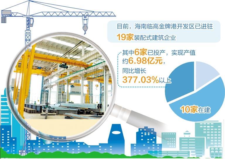 在刚刚结束的2023年海南自贸港产业园区投资合作大会上,临高金牌港开发区公布了一组发展装配式建筑产业的成绩单:已进驻19家装配式建筑企业,其中6家已投产,实现产值约6.98亿元,同比增长377.03%以上;10家在建(9家为2022年新开工项目),2022年完成固定投资9.98亿元,同比增长105.64%。