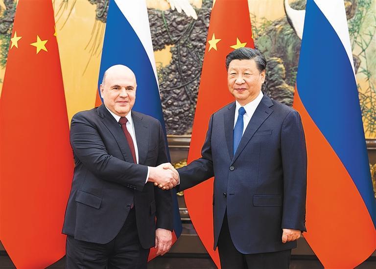 习近平请米舒斯京转达对普京总统的诚挚问候。习近平指出,今年3月,我对俄罗斯进行成功国事访问,同普京总统擘画了今后一个时期中俄关系发展和各领域合作蓝图。巩固好、发展好中俄关系,既是民心所向,也是大势所趋。希望双方继续发挥中俄合作空间大、前景广、动力足的优势,把各领域合作推向更高水平,不断丰富两国新时代全面战略协作伙伴关系的内涵。