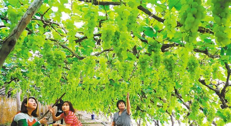 ▼5月26日,河北省迁安市上射雁庄镇小望都庄村棚室葡萄园的葡萄迎来丰收。该市采取“党支部+合作社+农户”模式,走规模化、市场化特色产业发展之路。本报记者 宋美倩摄
