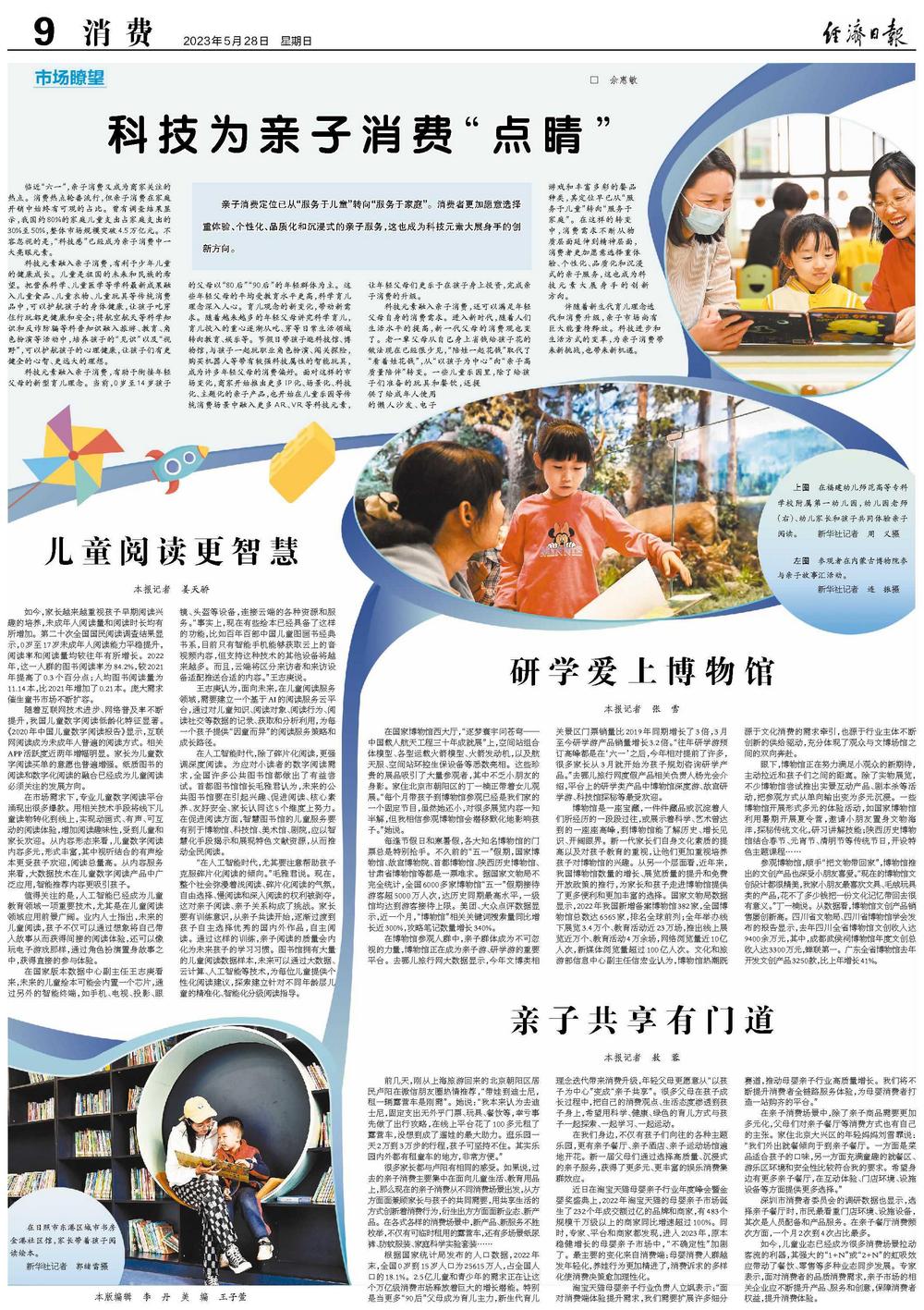 博物馆是一座宝藏,一件件藏品或沉淀着人们所经历的一段段过往,或展示着科学、艺术曾达到的一座座高峰,到博物馆能了解历史、增长见识、开阔眼界。新一代家长们自身文化素质的提高以及对孩子教育的重视,让他们更加重视培养孩子对博物馆的兴趣。从另一个层面看,近年来,我国博物馆数量的增长、展览质量的提升和免费开放政策的推行,为家长和孩子走进博物馆提供了更多便利和更加丰富的选择。国家文物局数据显示,2022年我国新增备案博物馆382家,全国博物馆总数达6565家,排名全球前列;全年举办线下展览3.4万个、教育活动近23万场,推出线上展览近万个、教育活动4万余场,网络浏览量近10亿人次,新媒体浏览量超过100亿人次。文化和旅游部信息中心副主任信宏业认为,博物馆热潮既源于文化消费的需求牵引,也源于行业主体不断创新的供给驱动,充分体现了观众与文博场馆之间的双向奔赴。