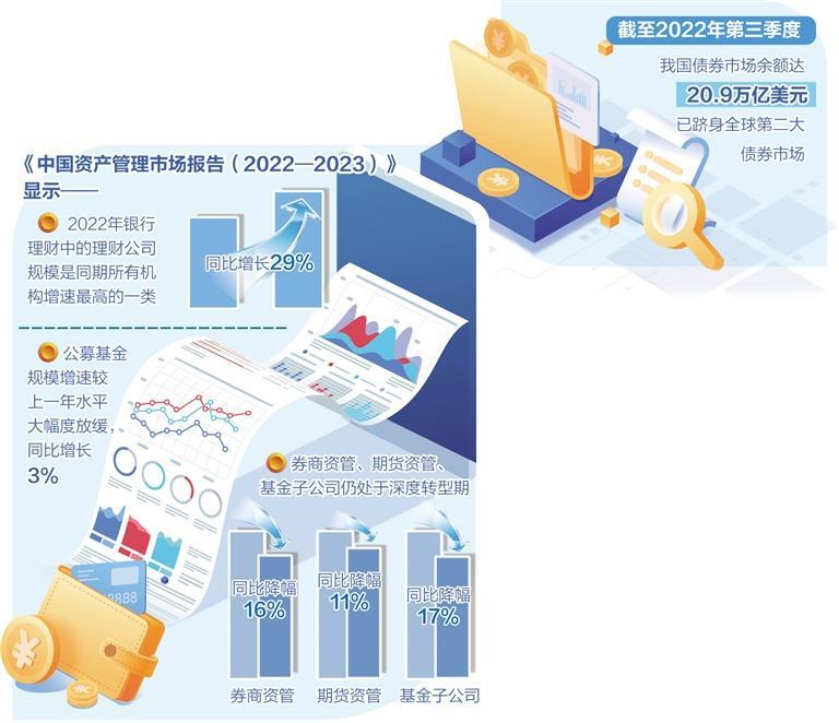 潘东认为,资产价值下跌是全球资管市场整体规模承压的最重要原因。股票和债券市场的低迷表现导致存量资产管理价值大幅缩水,全球资金净流入也出现下滑。去年,我国资管市场总规模达到133.8万亿元,再创历史新高,这无疑是最大的亮点。