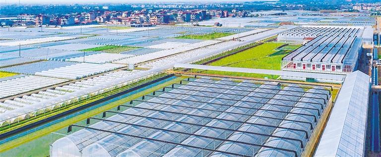 5月29日,浙江省嵊州市鹿山街道千亩茭白产业基地,高标准大棚规划齐整,充满生机。