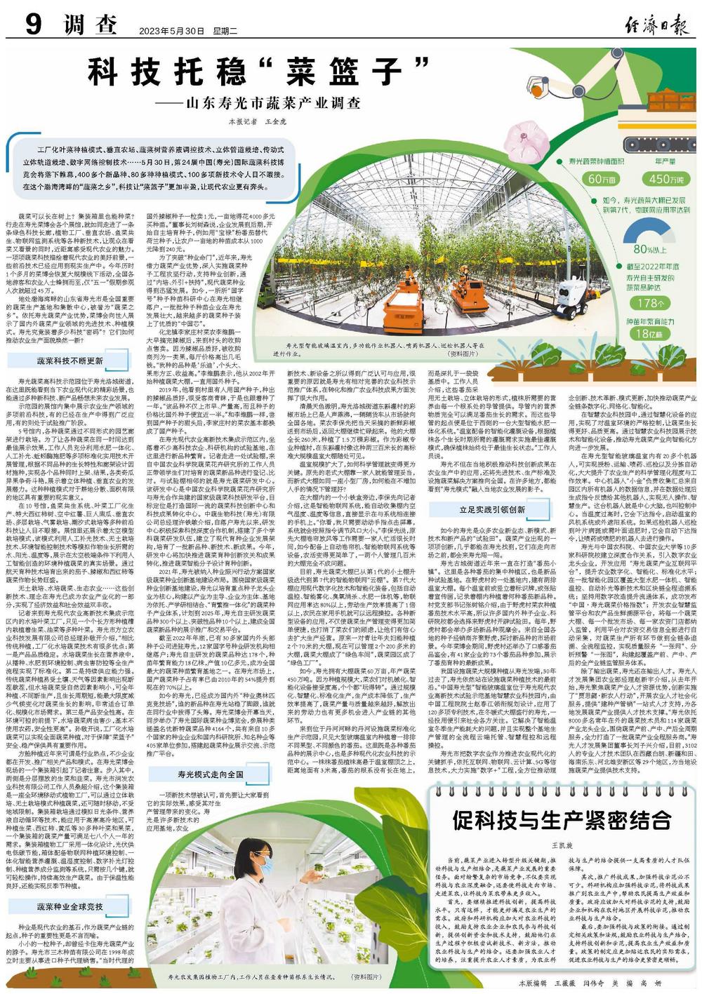 地处渤海湾畔的山东省寿光市是全国重要的蔬菜生产基地和集散中心,被誉为“蔬菜之乡”。依托寿光蔬菜产业优势,菜博会向世人展示了国内外蔬菜产业领域的先进技术、种植模式。寿光究竟装着多少科技“密码”?它们如何推动农业生产面貌焕然一新?