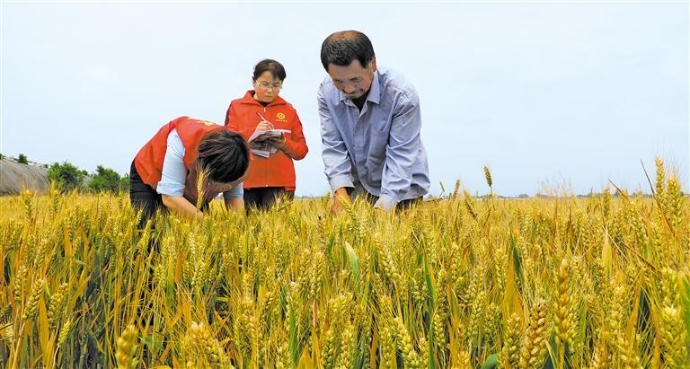 5月29日,在河北省邯郸市馆陶县柴堡镇黑小麦种植基地,党员服务志愿者与种植户在田间测产。该基地种植的黑小麦进入收获期,迎来又一个丰收季。