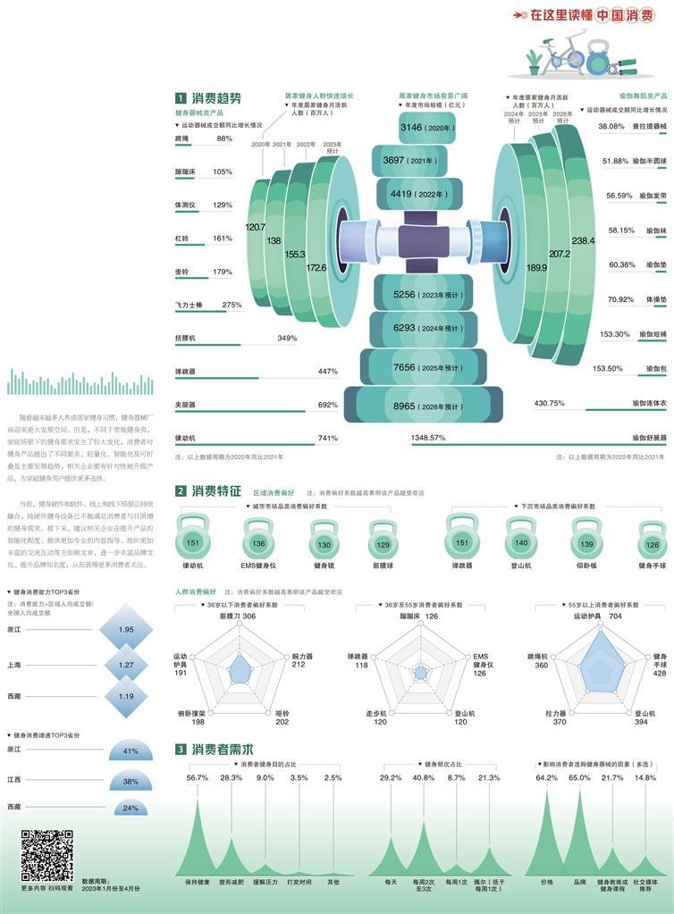 随着健身产品迭代升级,健身活动不再局限于健身房或户外,居家健身正凭借其低成本、更便捷、不受场地限制等优势,成为人们的新选择。从消费趋势变化看,家庭健身场景的兴起,给相关企业带来了更多发展机会,将助推健身行业变革与发展。