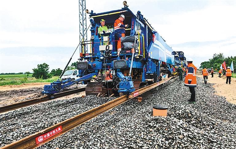 随着拆铺一体机将首根钢轨落入承轨槽,匈塞铁路(匈牙利段)在孔圣米克罗什—陶什站至伯斯特尔站区间开始了铺设首对钢轨工作,标志着匈塞铁路匈牙利段全面进入铺轨施工阶段。
