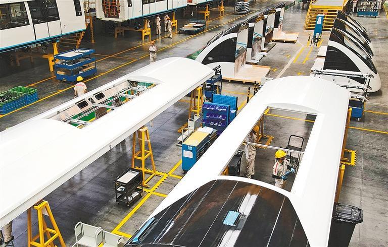 近日,安徽芜湖经开区中车浦镇阿尔斯通运输系统有限公司,工人在生产用于出口的单轨车辆。近年来,芜湖充分利用区位交通优势,重点打造航空航天、轨道交通等战略性新兴产业,促进产业链、创新链和人才链有机融合。方 好摄(中经视觉)