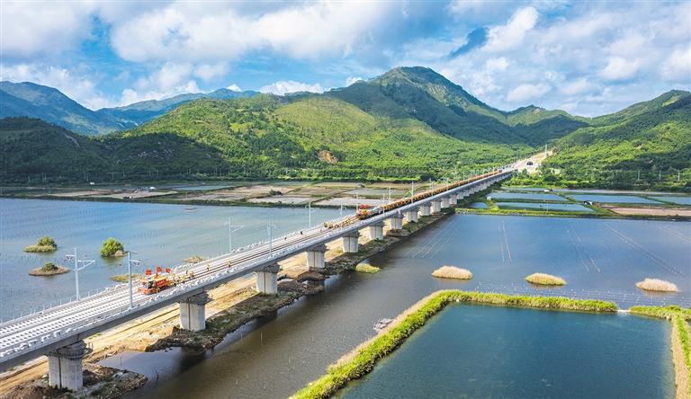 6月6日,广东省汕尾市大化村隧道出口施工现场,汕(尾)汕(头)高铁开始全线铺轨,正式进入开通前的冲刺阶段。建成通车后,广州至汕头时间将缩短至1.5小时左右。彭 特摄(中经视觉)