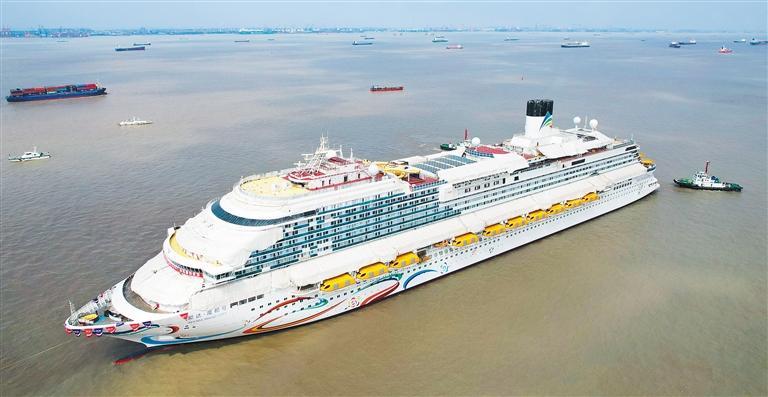 上图 6月6日,我国首艘国产大型邮轮“爱达·魔都号”在上海外高桥船厂成功驶离船坞。龙 巍摄(中经视觉)