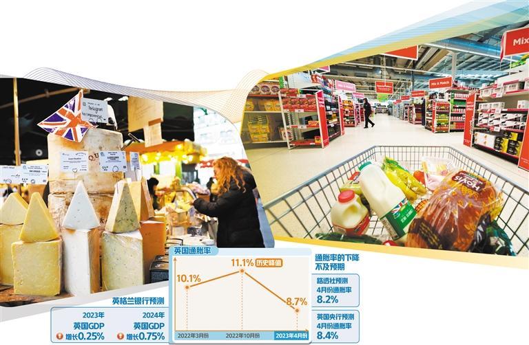 受乌克兰危机及西方国家联合对俄能源制裁的外溢影响,英国通胀率在2022年3月份飙升至10.1%,当年10月份达到11.1%的历史峰值。在英格兰银行连续加息影响叠加宏观经济因素改善下,英通胀率在今年4月份降至8.7%。但经济学家普遍认为,4月份英通胀率的下降仍不及预期。路透社此前经济调查显示,4月份通胀率将降至8.2%,而英国央行预计将降至8.4%,可见通胀压力顽固。英格兰银行经济学家预计英国内通胀不会得到快速改善,将在今年下半年缓慢下降,原因是商品和能源价格继2022年大幅上涨后在今年回调,但通胀的底层经济基础仍在,下降的阻力较大。当前,在英货币和财政政策协调发力下,通胀下降已成趋势,不确定的是通胀在多长时间能控制在目标水平,以及英国经济是否还要经历更长的“阵痛期”。