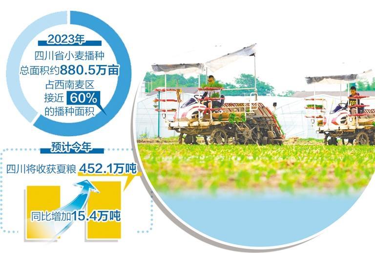 今年,四川小麦播种总面积约880.5万亩,占西南麦区近60%的播种面积,较去年稳中略增。随着油菜、小麦陆续收割结束,成都平原、川北地区进入水稻、夏大豆等作物的播种季节。强化农资保障、提高种粮效率、稳定播种面积,四川“三夏”生产正当时。