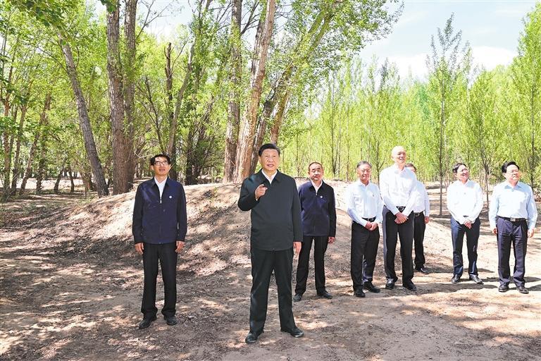 6日上午,习近平来到临河区国营新华林场,了解“三北”防护林体系工程建设情况。自1978年起,该林场大力治理耕地盐碱化造成的土地沙化问题,累计造林3.9万亩。在林场,习近平听取内蒙古“三北”工程建设和林场治沙造林情况介绍,并实地察看正在治理的沙地。习近平强调,人类要更好地生存和发展,就一定要防沙治沙。这是一个滚石上山的过程,稍有放松就会出现反复。像“三北”防护林体系建设这样的重大生态工程,只有在中国共产党领导下才能干成。三北地区生态非常脆弱,防沙治沙是一个长期的历史任务,我们必须持续抓好这项工作,对得起我们的祖先和后代。林场的工作很辛苦,也很有成效,要继续做好。科研工作者要把论文写在大地上,把实践中形成的真知变成论文,当党和人民需要的真博士、真专家。