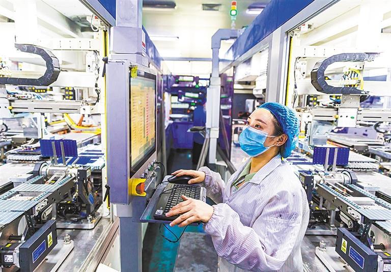 6月6日,位于江苏省海安市的江苏福克斯新能源科技有限公司车间内,工人正在赶制太阳能光伏组件。近年来,海安市整合当地光伏产业资源,实施自动化、信息化、智能化等升级改造,延伸产业链、提升价值链、打造供应链,持续提高光伏产业竞争力。翟慧勇摄(中经视觉)
