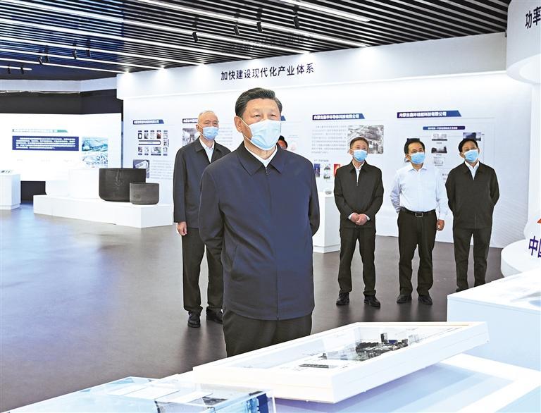 7日下午,习近平来到中环产业园考察。在园区展厅,习近平听取当地发展新能源新材料产业、促进产业结构优化调整、推动绿色低碳发展等情况介绍。随后,习近平来到生产车间实地察看产品生产流程,详细了解园区企业半导体和光伏材料等产品的研发生产情况。他强调,坚持绿色发展是必由之路。推动传统能源产业转型升级,大力发展绿色能源,做大做强国家重要能源基地,是内蒙古发展的重中之重。在这方面内蒙古方向明确、路子对头、前景很好,大有作为、大有前途。离开园区时,习近平亲切地对前来欢送的企业员工说,你们企业和园区办得不错,看了感到很提气。现在,我们要靠高水平科技自立自强、构建新发展格局来攻克科技难关。构建国内大循环是为了保证极端情况下国民经济能够正常运行,这同参与国际经济循环是不矛盾的。我们坚定不移实行高水平对外开放,敞开大门搞建设,一起合作实现共赢。习近平祝愿企业和员工继续努力,芝麻开花节节高,更上一层楼。