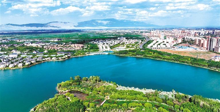 6月6日,甘肃省张掖市甘州区芦水湾生态旅游景区天蓝水碧,湖光山色,静美如画。近年来,张掖市坚持生态优先、绿色发展,积极探索生态产业发展、生态环境治理新途径,加强整治修复,完善生态保护基础设施,推动实现人与自然和谐共生。