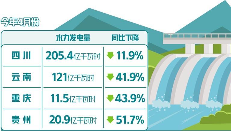 国家统计局数据显示,今年4月份,四川水电发电量205.4亿千瓦时,同比下降11.9%;云南水电发电量121亿千瓦时,同比下降41.9%。随着用电量不断攀升,今夏西南地区电力供需形势如何?如何积极保障生产生活基本用电需求?