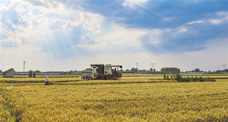 6月10日,山东省青州市黄楼街道西侯庙村,农机手驾驶收割机在田间收割小麦。农业农村部小麦机收调度显示,当前全国已收获冬小麦面积超2.24亿亩,进度过七成。王继林摄(中经视觉)