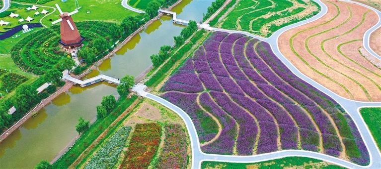 6月10日,浙江省玉环市漩门湾国家湿地公园内,田地五彩缤纷,美如画卷。近年来,当地坚持改善生态环境,加大水域湿地治理修复力度,着力打造美丽湿地风景线,为市民提供了休闲好去处。
