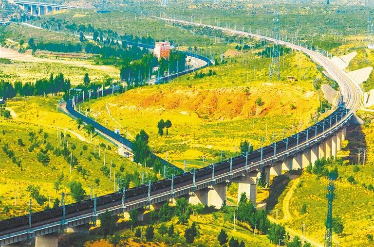 近日,满载电煤的列车行驶在包西(包头至西安)铁路线包头与鄂尔多斯市间黄河大桥上。入夏以来,为确保煤炭运输顺利“迎峰度夏”,中国铁路呼和浩特局及时掌握各电厂电煤存耗情况和运输需求,为电煤运输提供充足的铁路运力保障。夏 亮摄(中经视觉)