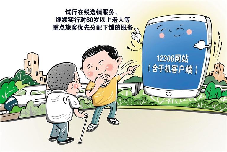 国铁集团日前在12306网站(含手机客户端)试行在线选铺服务,选择通达全国各区域的230趟高铁、普速旅客列车作为试点,对普速列车软卧、硬卧和动车组软卧、一等卧、二等卧等铺别提供在线自主选铺服务。在线选铺服务上线后,将进一步提升旅客购票体验,更好地满足旅客出行需求。试点期间,铁路部门将认真听取广大旅客的意见和建议,继续优化在线选铺服务功能,逐步扩大应用范围,努力为广大旅客创造更加便捷美好的旅行生活。