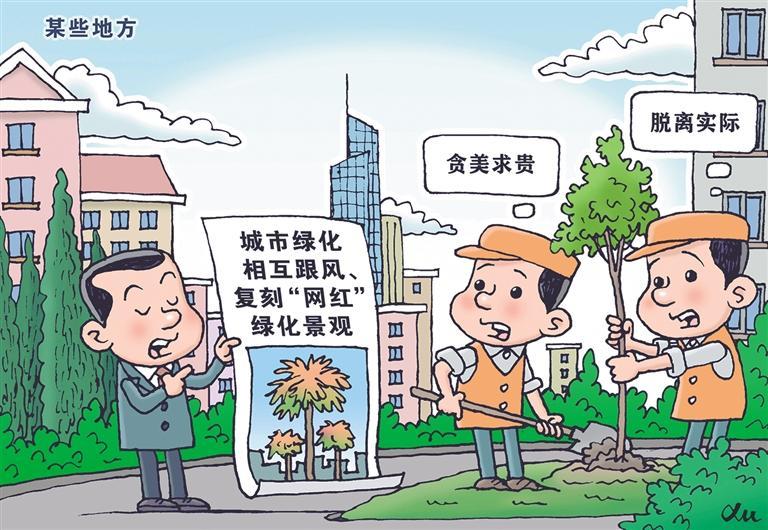 城市绿化,向来不是强造出来的。一个美丽城市的内核,在于人们对大自然的珍爱与敬畏,在于人与自然的和谐共生。近年来,一些城市在绿化过程中出现相互跟风、贪美求贵等现象,有的不顾实际条件跟风引进“网红”树种、盲目追求“四季有花”,还有的只管好看不考虑实用、“砍了栽、栽了砍”反复折腾,为群众所诟病。这些错误做法既破坏生态,又造成巨大浪费,也往往容易滋生腐败,亟需警惕并加以纠偏。城市绿化要与规划发展同步,不是哪里要考核评选,哪里就要破土施工、突击绿化。只有实事求是搞绿化,才能让美好真正留在人们心田。