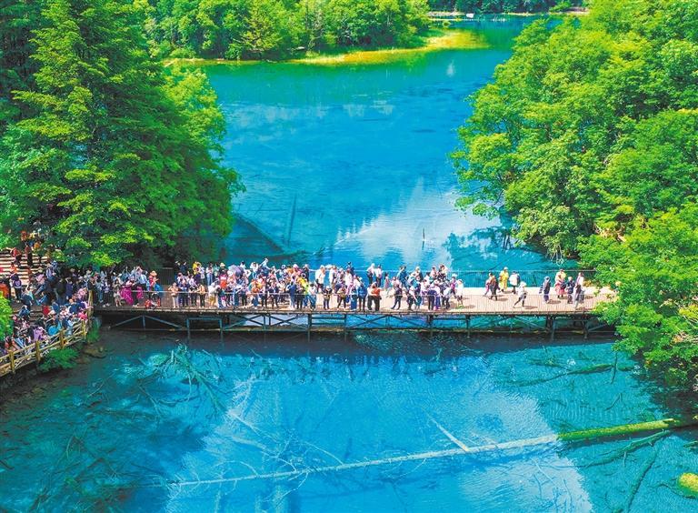 6月18日,四川省阿坝州九寨沟县的九寨沟景区内游人如织。随着毕业季及暑期的到来,九寨沟吸引了大量的游客前来观光、休闲和度假。截至6月初,九寨沟景区已接待游客超120万人次。严易程摄(中经视觉)