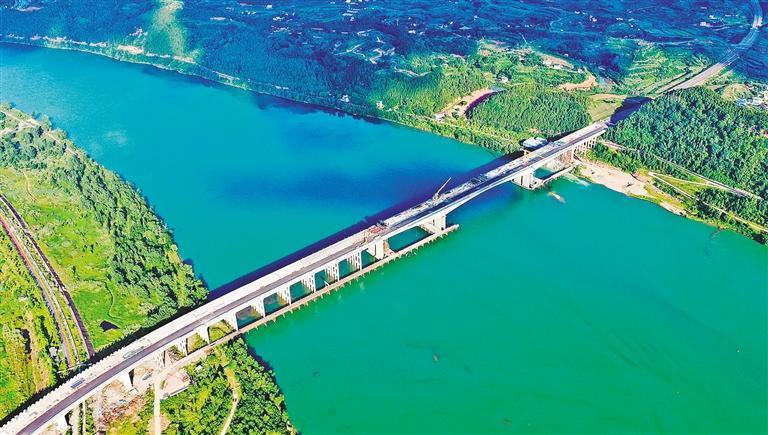 6月23日,四川省蓬安县嘉陵江三桥施工现场,工人们加紧施工保障工程进度。端午节假期期间,当地加速推进项目建设,多个重点项目施工不停歇,确保各项目标如期完成。周 亮摄(中经视觉)
