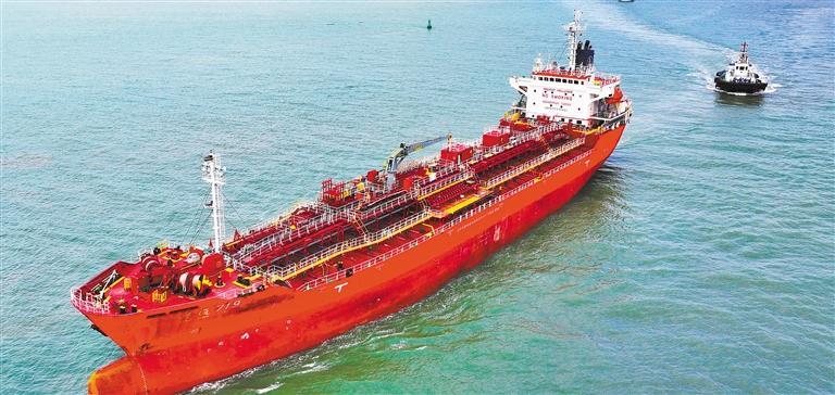 6月26日,一艘油轮正在进入江苏连云港港徐圩港区原油泊位准备靠泊。目前,连云港港徐圩港区盛虹炼化码头已建成投用1个30万吨级原油泊位和4个5万吨级液体散货泊位,码头岸线总长1670米,实现了油船全天候、常态化通航,开辟出一条安全、畅通、便捷的海上物流通道,为连云港打造世界一流石化产业基地提供有力支撑。