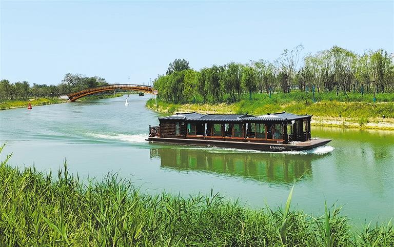 在河北省沧州市,穿城而过的大运河成了城市的主轴线。大运河上,一艘艘满载游客的游船推开道道碧波,驶向远方。