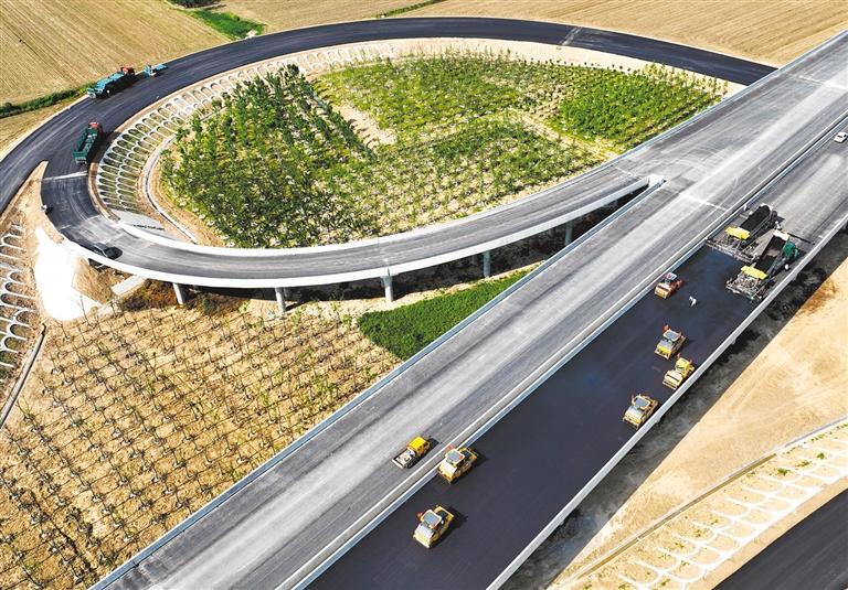 6月24日,在安徽省亳州市涡阳县标里镇亳蒙(亳州到蒙城)高速公路一期工程施工现场,施工人员正在铺设沥青路面。亳蒙高速全长约105.6公里,建成后将对完善皖北高速路网、推动区域经济发展发挥重要作用。