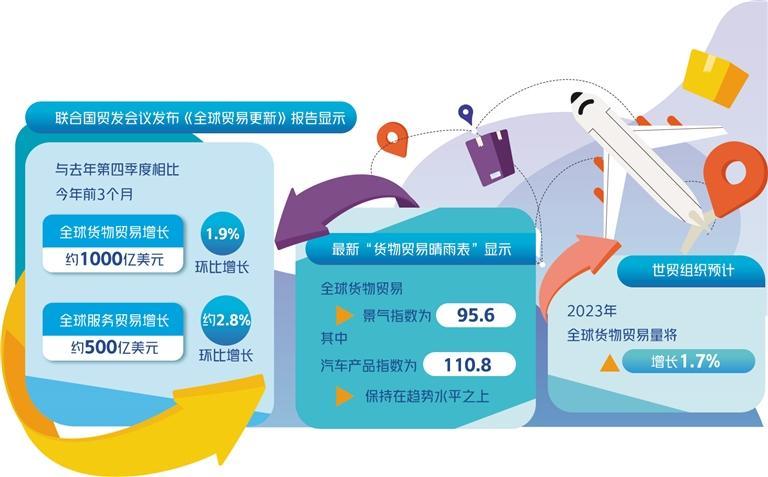最近一段时间,持续低迷的全球贸易数据似乎有复苏迹象。联合国贸易和发展会议近日发布《全球贸易更新》报告显示,2023年一季度,全球商品和服务贸易在连续两个季度呈下降态势后出现积极增长。