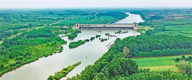 7月4日,位于山东省郯城县的拦河大坝。地处苏鲁两省交界处的沭河,经江苏省东海县山左口镇北古寨村和郯城县归义街道一路南下,流向江苏新沂、宿迁。沿河两岸水利设施完备,为安全度汛提供坚实保障。