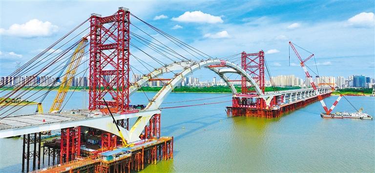 7月3日,江西省南昌市复兴大桥项目桥梁主梁工程正在加紧施工建设。作为南昌市第七座跨赣江桥梁,复兴大桥建成后能有效提升车辆过江通行效率,串联起南昌高新区、南昌县、红谷滩区九龙湖片区、新建区等区域,助力区域经济高质量发展。