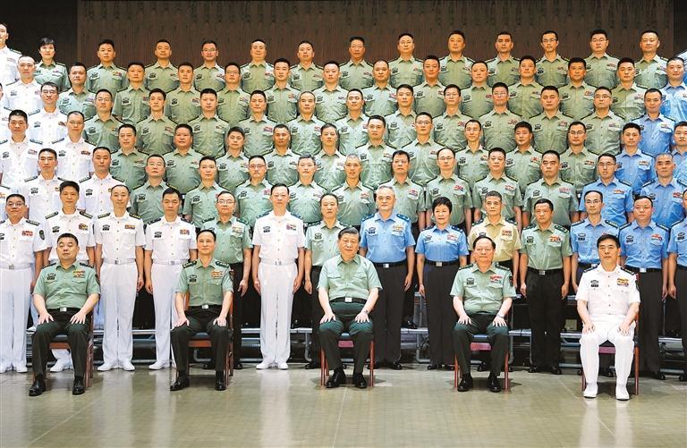下午3时15分许,习近平来到东部战区机关,在热烈的掌声中,亲切接见东部战区官兵代表,同大家合影留念。