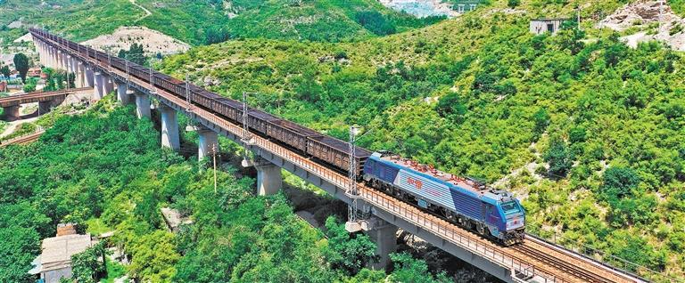7月5日,一列装载电煤的货运列车驶向河南焦作月山站。高温酷暑天气到来,各地电煤需求旺盛。中国铁路郑州局集团有限公司充分发挥“晋煤外运”通道优势,加大运力投放,保障电煤运输安全、优质、高效。