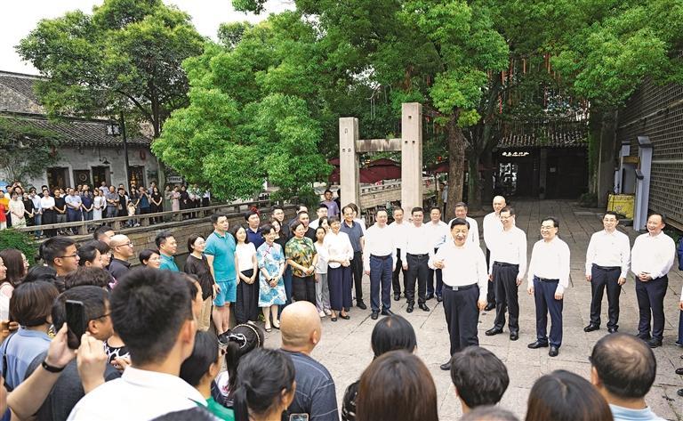 位于苏州古城东北隅的平江历史文化街区,距今已有2500多年历史。6日上午,习近平来到这里考察,详细听取苏州古城保护及平江历史文化街区保护、修缮、利用情况汇报,步行察看古街风貌,观看苏绣制作,体验年画印刷。他说,中华优秀传统文化代代相传,表现出的韧性、耐心、定力,是中华民族精神的一部分。