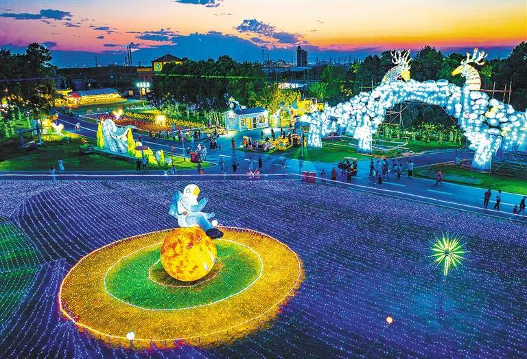 7月9日,安徽省肥东县桥头集镇欢乐森林景区灯火璀璨,市民在休闲游玩。近年来,肥东县大力发展夜经济,不断聚集“烟火气”,推动经济持续向好。王尚云摄(中经视觉)