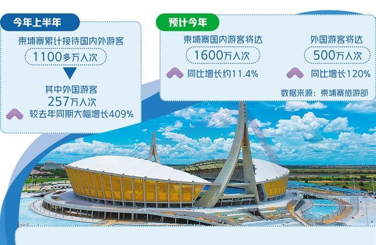 据柬埔寨旅游部最新发布的消息,今年上半年,柬埔寨累计接待国内外游客1100多万人次,其中外国游客较去年同期增长了4倍多。预计今年,柬埔寨国内游客将达1600万人次,较去年增长约11.4%;外国游客将达500万人次,同比增长120%;全年旅游总收入将超过40亿美元。总体来看,柬埔寨旅游业复苏强劲,将有力推动柬埔寨的经济增长。