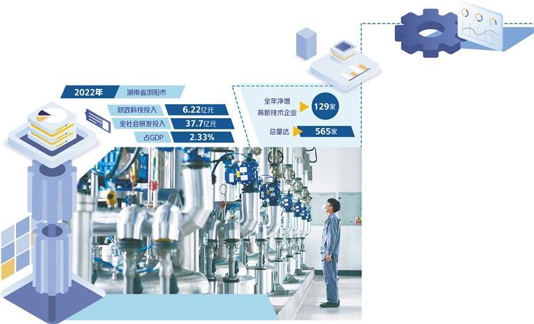 作为首批国家创新型县(市),浏阳近年来大力实施创新驱动发展战略,不断激发科技创新活力,培育科技创新主体,塑造区域创新优势,助推县域经济高质量发展。2022年,浏阳市财政科技投入6.22亿元,全社会研发投入37.7亿元,占GDP的2.33%,全年净增高新技术企业129家,总量达565家。