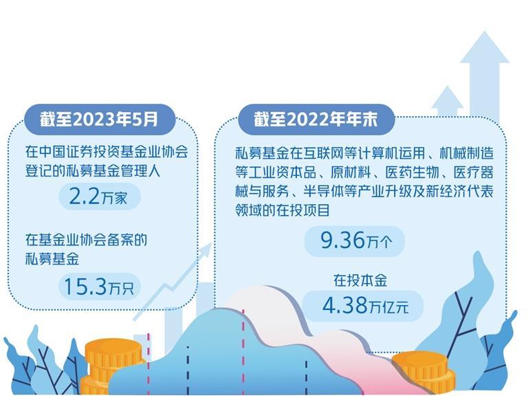 截至2023年5月,在中国证券投资基金业协会登记的私募基金管理人有2.2万家,在基金业协会备案的私募基金有15.3万只,基金规模21万亿元左右,居全球前列。
