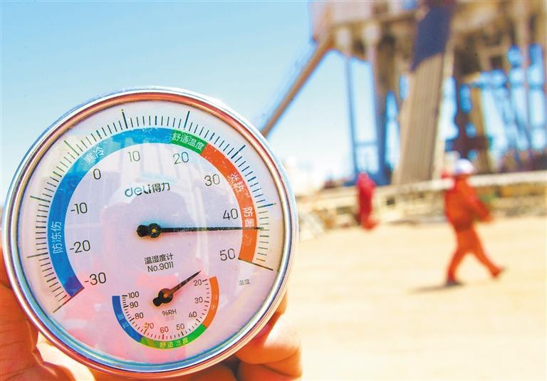 ◀7月13日,新疆玛湖油田,中国石油西部钻探工程有限公司准东钻井公司XD70510钻井队工人在忙生产。