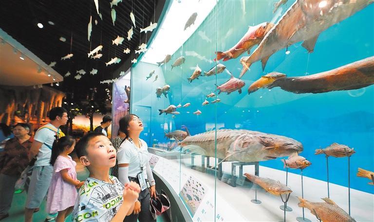 ▼7月19日,观众在位于重庆市北碚区的重庆自然博物馆参观。近年来,北碚区通过打造“百馆碚城”,让市民在生活圈中尽享文博资源。